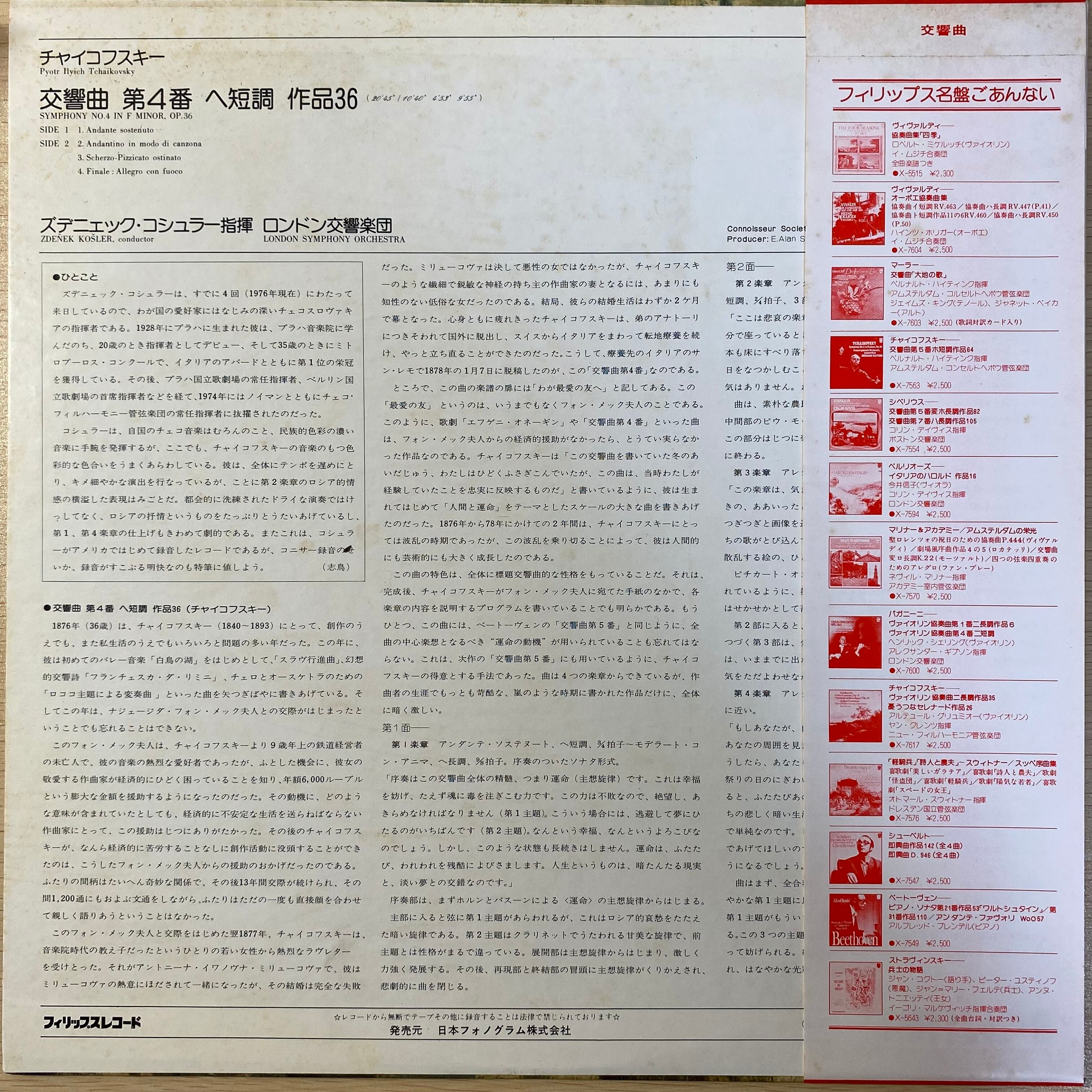 曲目リスト:第1楽章 Andante sostenuto/第2楽章 Andantino in modo di canzona/Scherzo–Pizzicato ostinato/Finale: Allegro con fuoco
