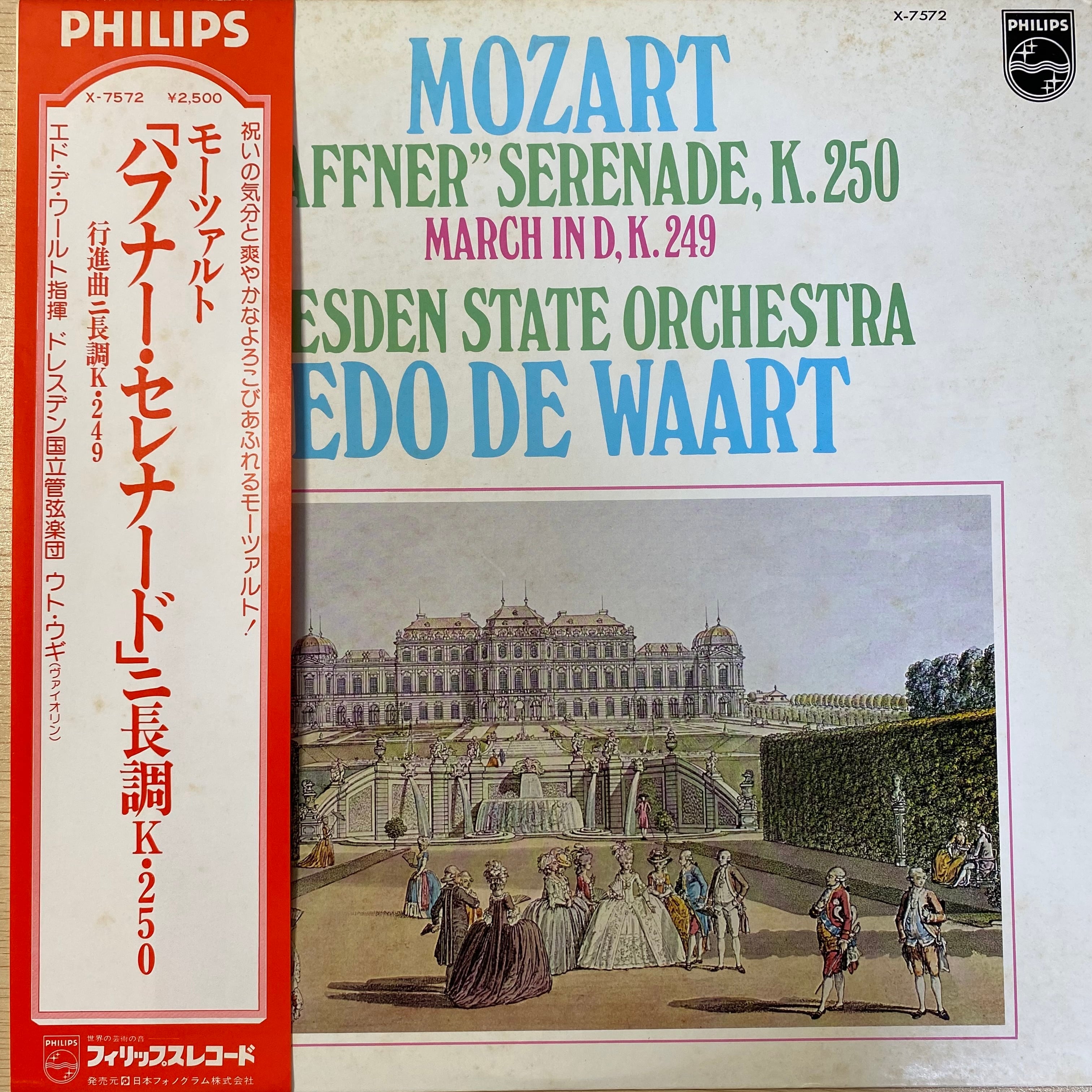 ハフナー家の結婚記念として作曲された祝祭的序曲「ハフナー」セレナーデと、それに連なる行進曲を、ウト・ウギ独奏、エド・デ・ワールト指揮、ドレスデン国立管弦楽団が演奏。1970年代フィリップス録音のヴィンテージLP作品。