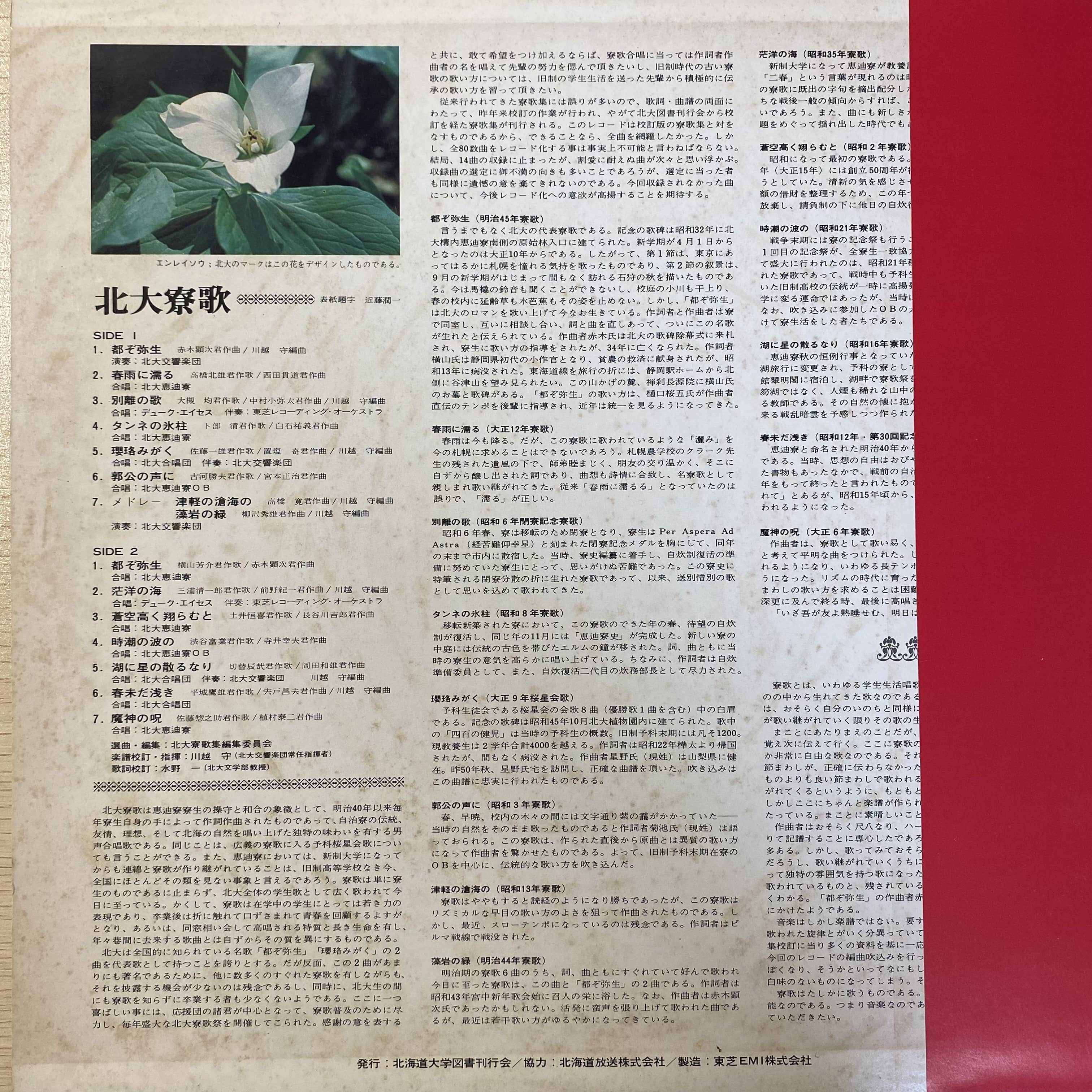 このアルバムは、北海道大学の歴史とともに歩む寮歌を集めた決定盤です。北大の学生たちの情熱が詰まった楽曲が収録されています。