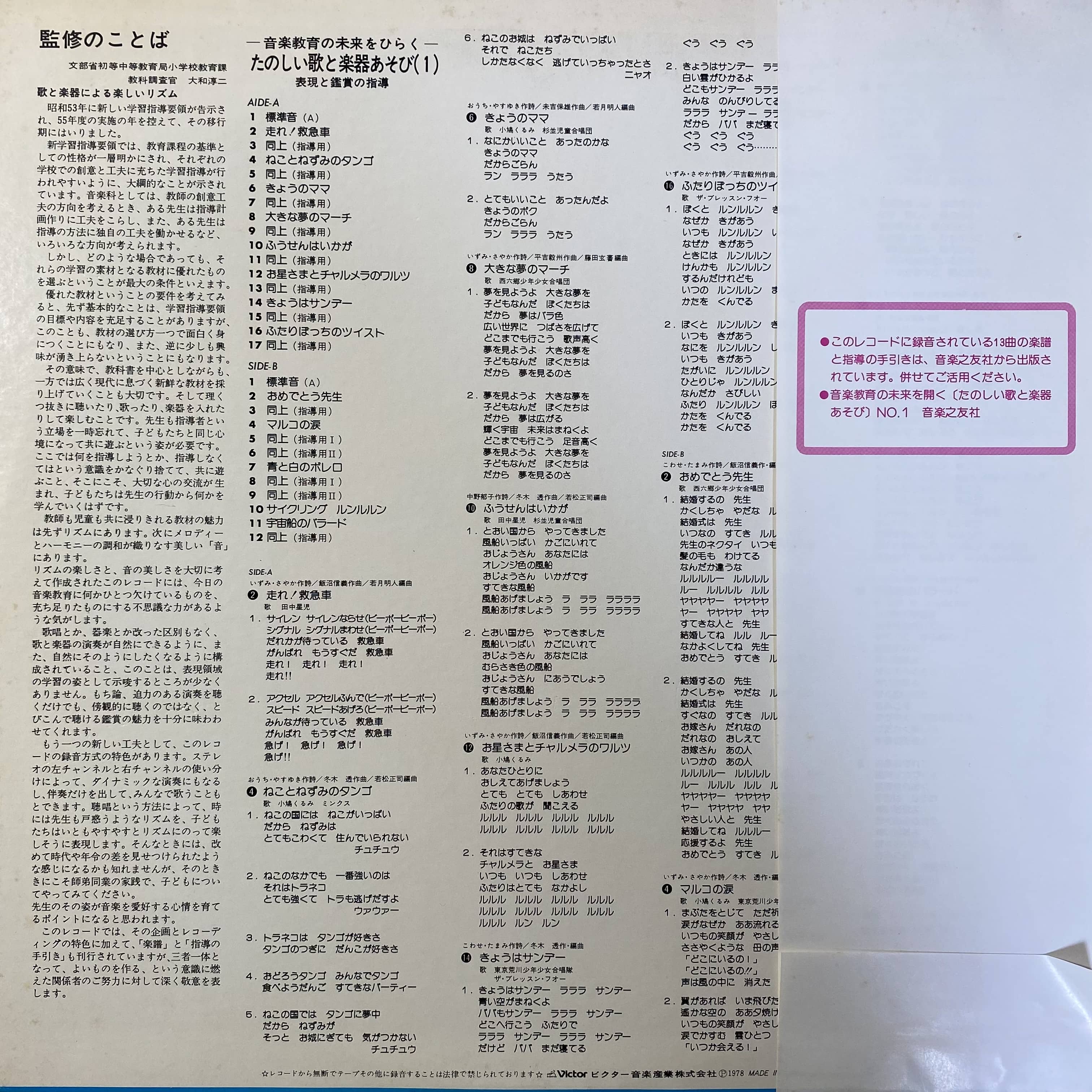 このアルバムは、子供たちが楽しく音楽に親しむための作品です。さまざまな歌と楽器の演奏を通じて、音楽教育の未来を広げます。
