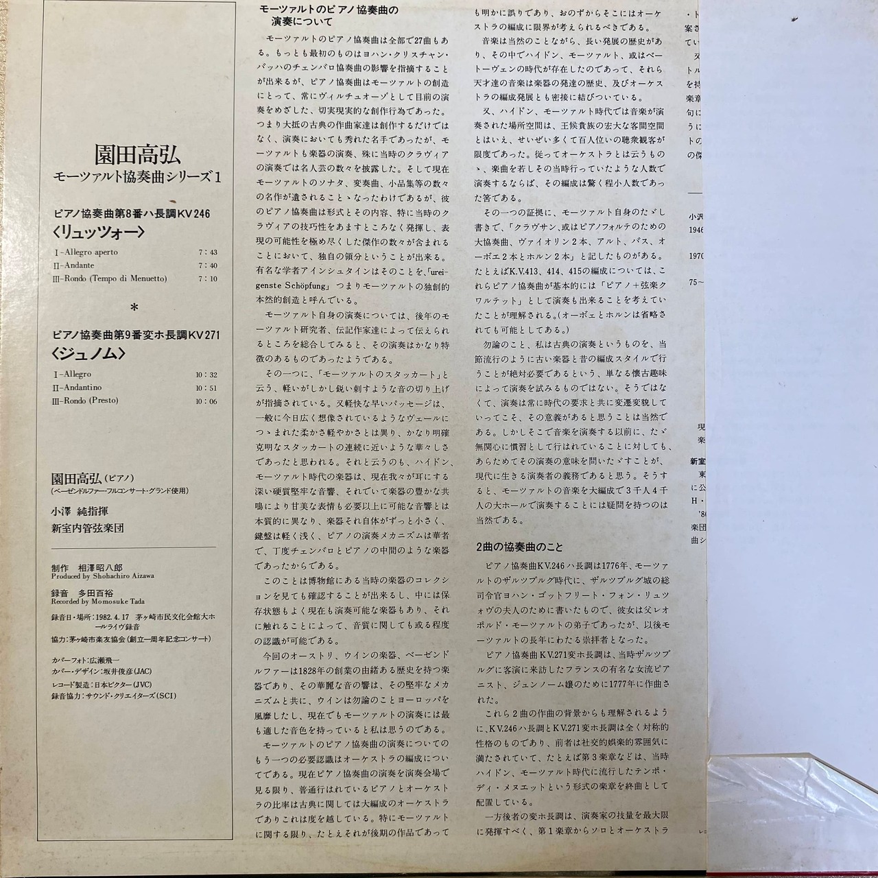 このアルバムは、モーツァルトのピアノ協奏曲を収録したシリーズの第一弾です。園田高弘の演奏による美しい音楽をお楽しみください。