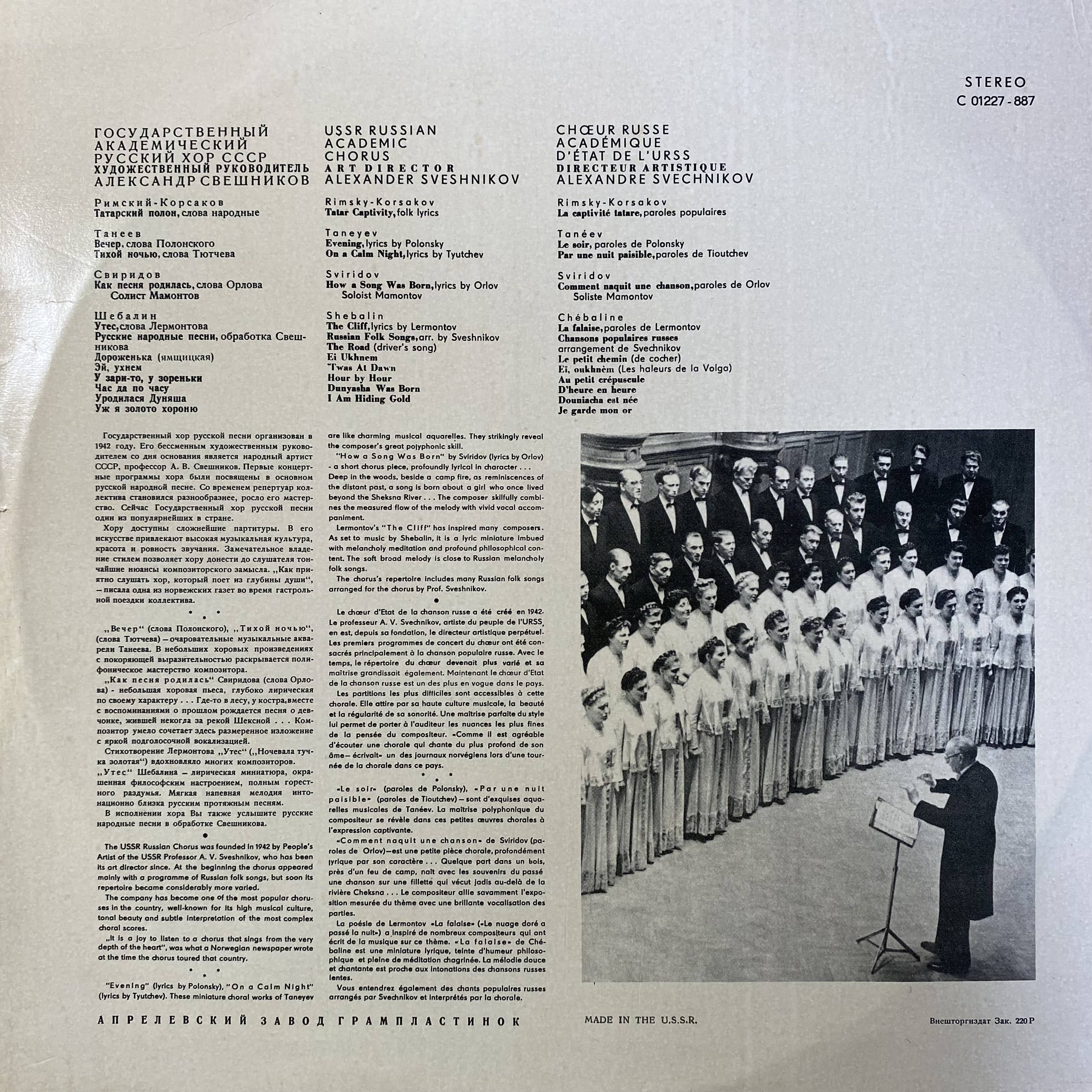 このアルバムは、ロシアの伝統的な合唱音楽を収めた作品です。アレクサンドル・スヴェシニコフの指揮のもと、豊かなハーモニーと感情が表現されています。