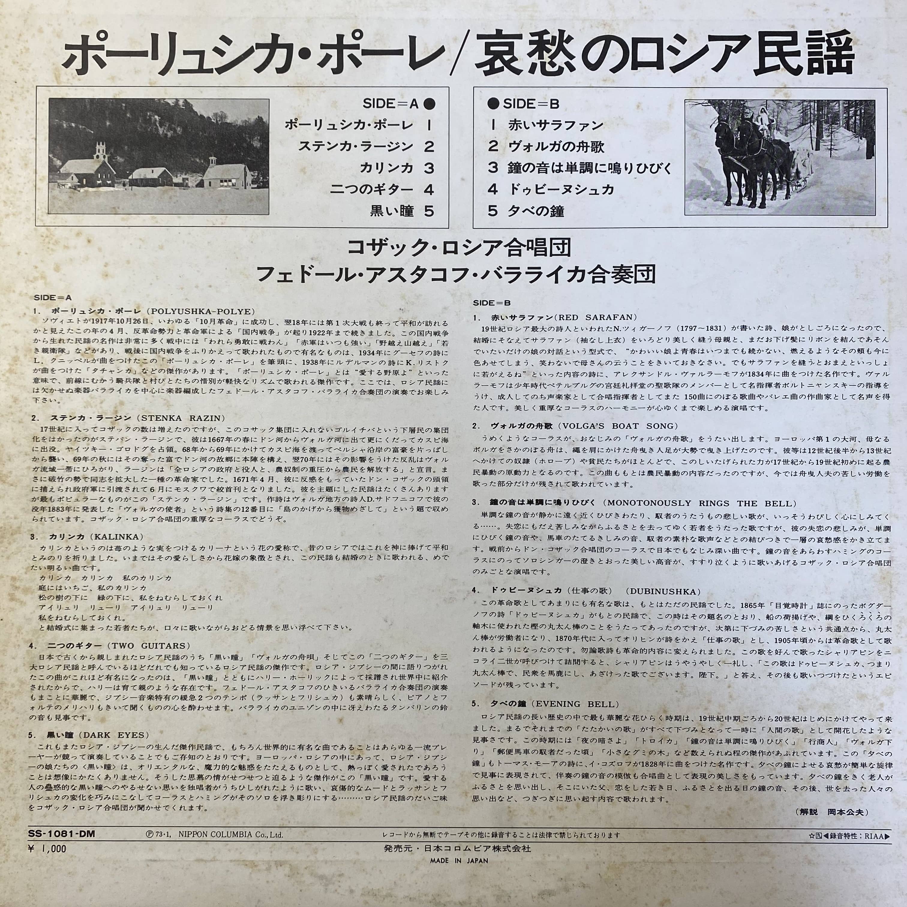 アーティスト:THE COSSACK RUSSIAN CHORUS & THE FEDOR ASTACHOW BALALAIKA ORCHESTRA