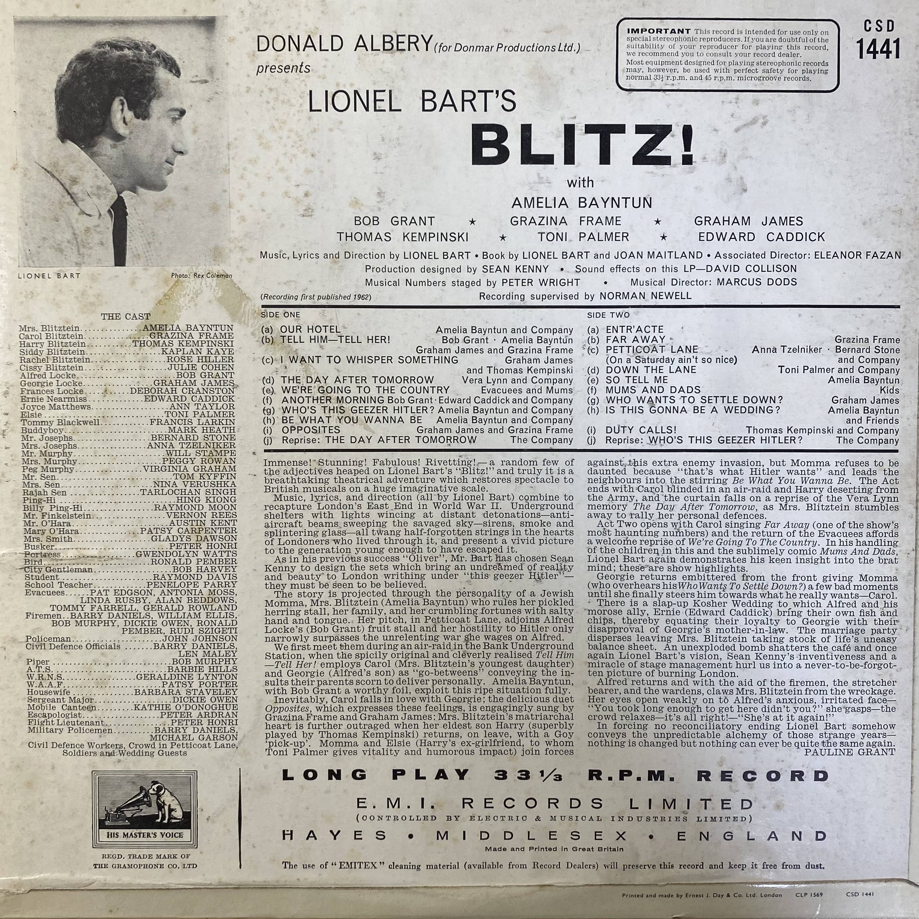 このアルバムはライオネル・バートのミュージカル『BLITZ!』を収録しています。戦時中のロンドンを舞台にした物語で、ユーモアと感動が詰まっています。