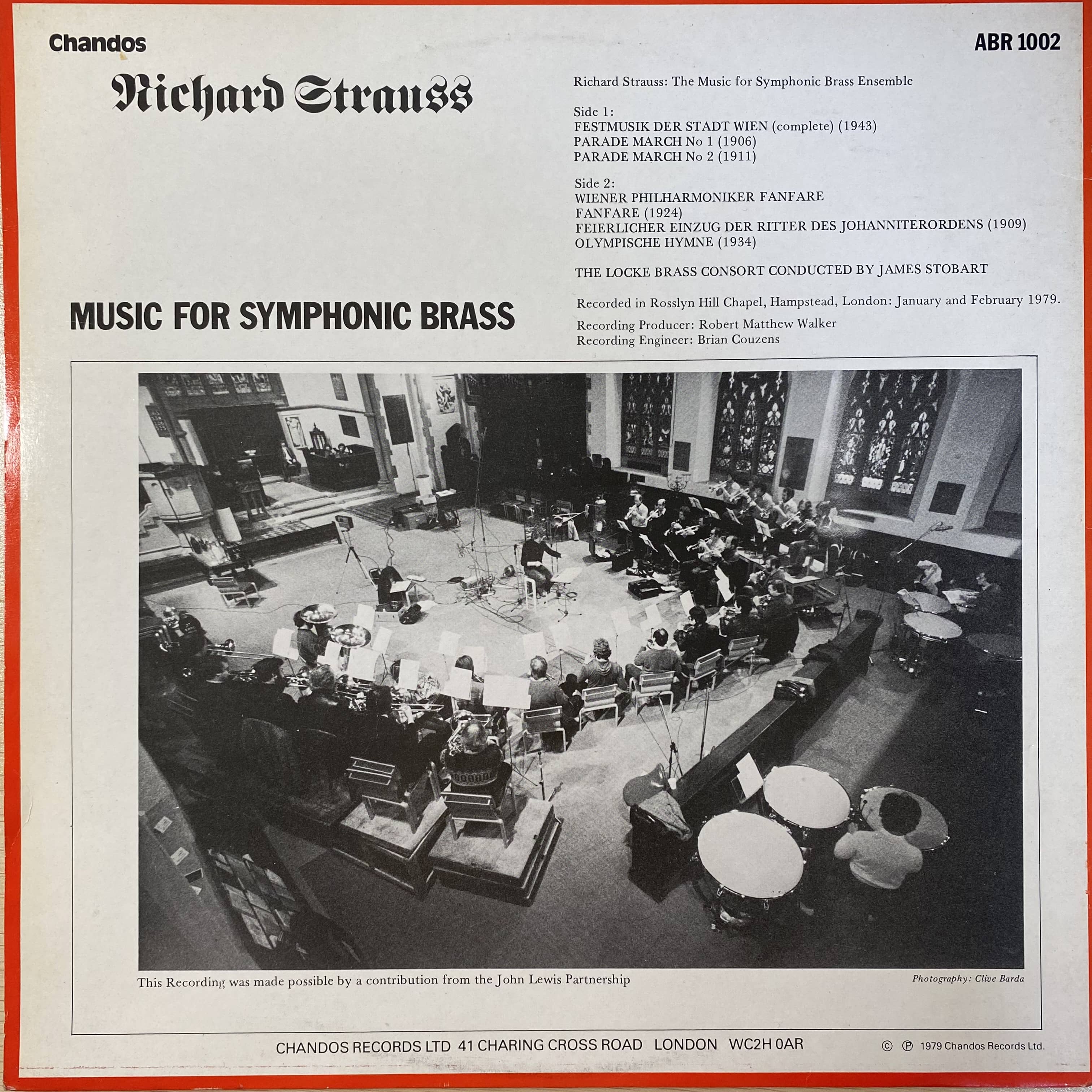 このアルバムは、リヒャルト・シュトラウストラの金管合奏のための組曲を集めた作品を収録したアルバムです。演奏はThe Locke Brass Consort、James Stobart 指揮によるものです。1979年にChandos Recordsよりリリースされ、ロンドンのRosslyn Hill Chapelで録音されました。