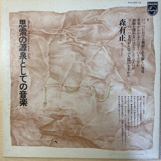 アーティスト:森有正 https://everplay.base.shop/search?q=%E6%A3%AE%E6%9C%89%E6%AD%A3 レーベル:PHILIPS カタログ番号:PH-8519 リリース年:1977 ジャンル:実験音楽 アルバム紹介: このアルバムは音楽の新しい発見を探求する内容です。音楽が人間の生き方に与える影響について考察しています。 規格:LP ジャケット状態:B+ 盤面状態:A- 歌詞カード:なし 帯:なし <レコードの状態の判断基準> https://everplay.jp/column/3316